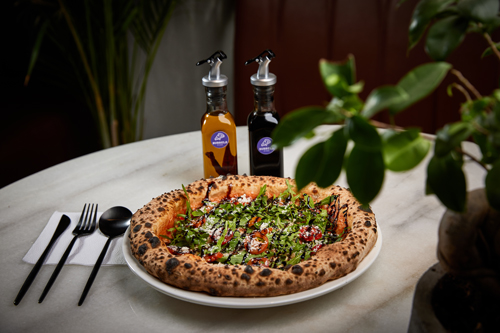 صوص طماطم-جبنة موزاريلا-ورق ريحان-بيبروني